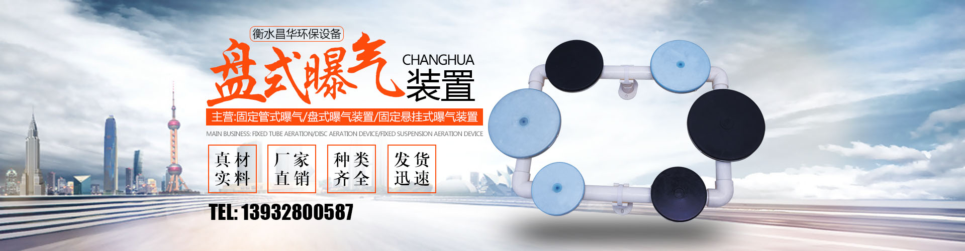 衡水昌華環保設備制造有限公司(原衡水市桃城區慈愛源污水處理曝氣設備廠)專業生產環保設備及其配件。我公司生產各種型號微孔曝氣管、微孔曝氣盤、聚氨脂曝氣管、高密度聚乙烯曝氣管、無阻塞大通氣量旋流曝氣器。我公司生產的微孔膜曝氣管(膜片)、曝氣盤(膜片)、均采用美國、德國和荷蘭技術的高強度、高彈性、高抗撕裂、強抗老化的硅橡膠、三元乙丙橡膠和聚氨酯。曝氣管(盤)骨架均采用高強度、抗老化的ABS、增強聚丙、UPVC等工程塑料,堅固耐用。